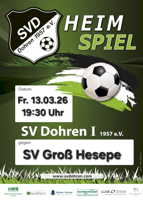 Am morgigen Donnerstag geht es für die 2. Mannschaft des SV Dohren nach der Winterpause direkt ins Derby gegen den VFL Herzlake III. Anpfiff ist...
